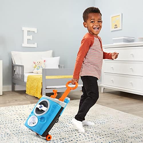 Set the stage and put on a show wherever you go with the Kidi Superstar Jr. Karaoke™! Singing your heart out has never been easier: roll in this portable machine, set up the mic, and choose one of ten built-in lyrical songs and popular melodies. Sing along in harmony or drop the vocals for a solo performance. Keep the concert going! Expand the set list by using Bluetooth® wireless technology to connect your favorite music, allowing a singalong with any song. Switch things up: change the tempo speed, then use voice effects to match the tone. You can even sound like a silly robot! Dance to four different music styles and add colorful light effects for the full experience. All that’s left to do is receive a standing ovation from your fans! Intended for ages 3+ years. Requires 4 AA batteries. Batteries included for demo purposes only. New batteries recommended for regular use.