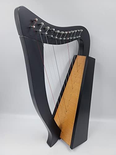 12 Strings Harp Irish Celtic Highland Solid Rosewood black natural shape Nylon Lever Tuning Key Extra Set included 18″ inches tall Roseback