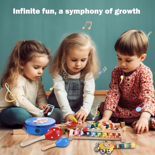 16 Pcs Musical Instruments for Toddlers 1-3, Baby Wooden Musical Toys for Toddlers 1-3 Toddlers Daycare Toys Baby Kids Musical Instruments for Kids Ages 1-3, 5-9