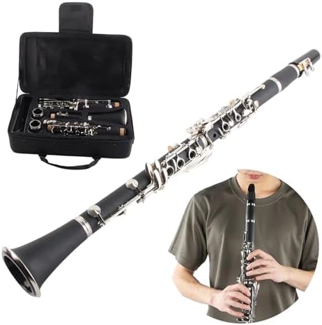 17 Key Clarinet Set, Removable Wood Bb Clarinet Musical Instrument with Cleaning Cloth Reed Screwdriver Box for Beginner (Black)