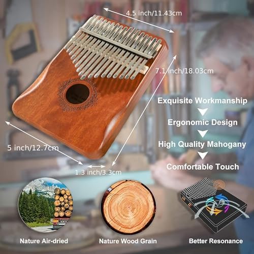 17 Keys Kalimba Thumb Piano, Ergonomic Portable Finger Piano, Retro Style Mbira Finger Piano With Study Instruction And Tune Hammer, Music Gifts For Adults Beginners Lovers Players Professional