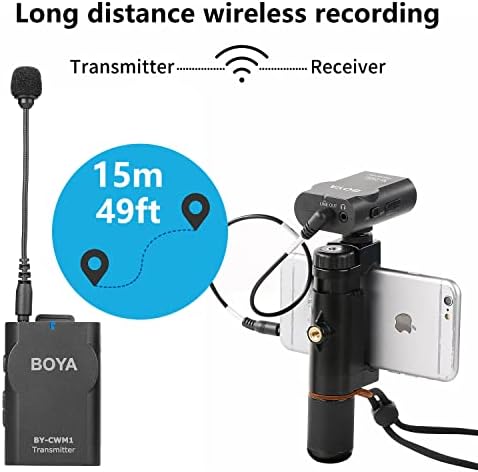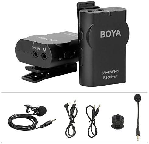 2.4GHz Wireless Lavalier Microphone 3.5mm for Cameras,BOYA by-CWM1 Wireless Microphone with TRS Gooseneck Microphone for DSLR, Camcorders, Smartphones,Podcast,Interview,Vlogging,Livestream