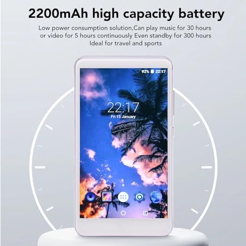 LONG BATTERY LIFE: The WiFi MP4 player has a built in 2200mAh high capacity Li ion battery with low power solution, which can play 30 hours of music or 5 hours of video continuously, and even standby for 300 hours. Fully meet your traveling or sports needs.