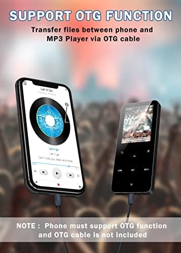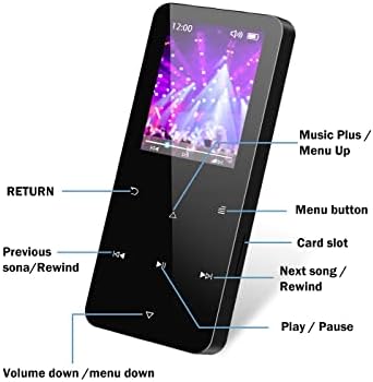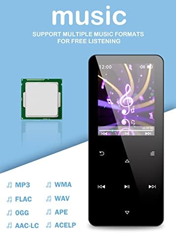 32GB Mp3 Player with Bluetooth 5.0,Play Music up to 30 Hrs.Portable Digital Lossless Music MP3 MP4 Player with FM Radio, Voice Recorder, Super Light Metal Shell Touch Buttons – Black