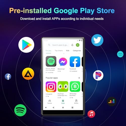【Easy to Use】 This MP3 player is built-in with a variety of mainstream media APPs, such as Amazon Music, Spotify, Audible, Deezer, Chrome, YT Music, Play Store, and more. It also supports downloading and installing other apps, you can download the APP you want anytime and anywhere, and it is more convenient to use.