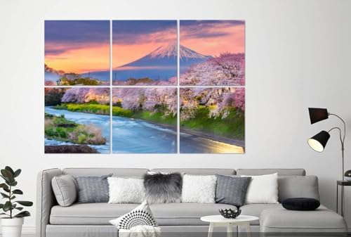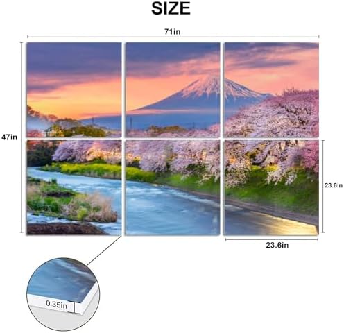6 Pack Art Acoustic Panels Mountain cherry blossom season sunset Soundproof Wall Panels, 48″x72″ Decorative Sound Absorbing Panels, Acoustic Treatment for Home, Office