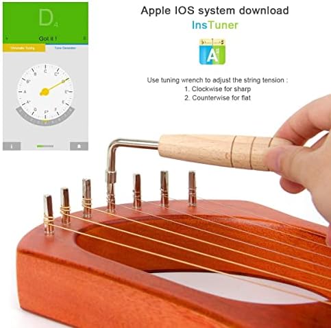 【TUNING TOOLS INCLUDED】The lyre harp kit comes with a tuning wrench, you can use the wrench to adjust the tension of string by turning clockwise or counterclockwise.