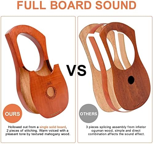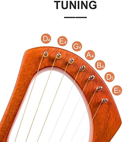 【7 STEEL STRINGS】The 7 metal string lyre harp is equipped with durable steel strings. The tone is ringing and can fill in a whole room. The shorter the string is, the higher tone you’ll get. And so does the tension of strings.
