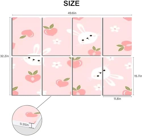 8 Pack Art Acoustic Panels Seamless pattern bunny rabbit cartoons peach fruit cute flower pink Soundproof Wall Panels, 32″x48″ Decorative Sound Absorbing Panels, Acoustic Treatment for Home, Office