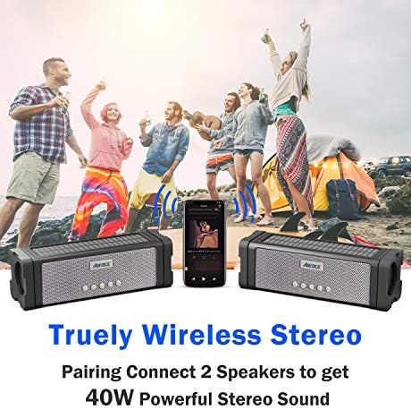 【True Wireless Multi-unit Pairing】Just pair our two ABFOCE Wireless Speaker Bluetooth together to get 40Wats powerful stereo sound, Built-inHands-free call, microphone,TF card slot,AUX ,3.5mm audio cable for non-Bluetooth devices.