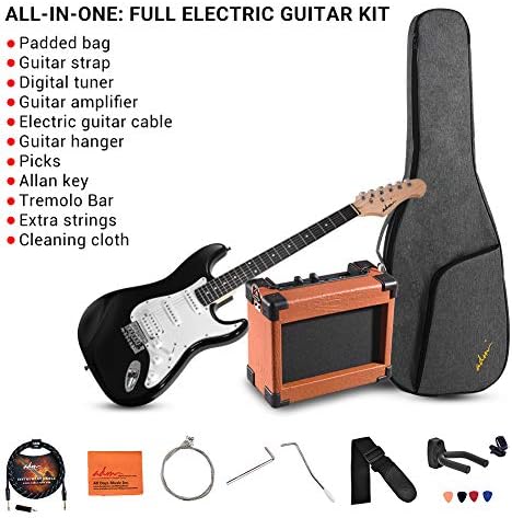 ADM Electric Guitar Beginner Kit 39 Inch Full Size Guitar Package with Amplifier, Bag, Strap, String, Tuner, Cable and Picks (Black)