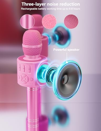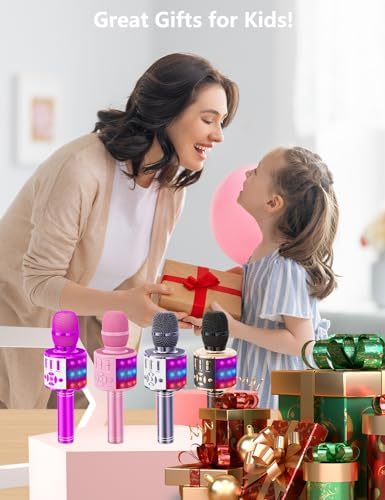 Ankuka Karaoke Microphone for Kids, Portable 4 in 1 Bluetooth Karaoke Microphone with LED Lights, Christmas Home, Birthday Party Toys Gifts for Girls, Boys and Adults(Pinkcolor)