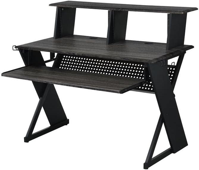 Keep your recording studio space organized while you create musical masterpieces with the music desk. Smaller in size yet still powerful, the dek can securely hold all your equipment and gear. The shelf can be used to mount a monitor and speakers. The pullout keyboard tray smoothly glides in and out with ease.