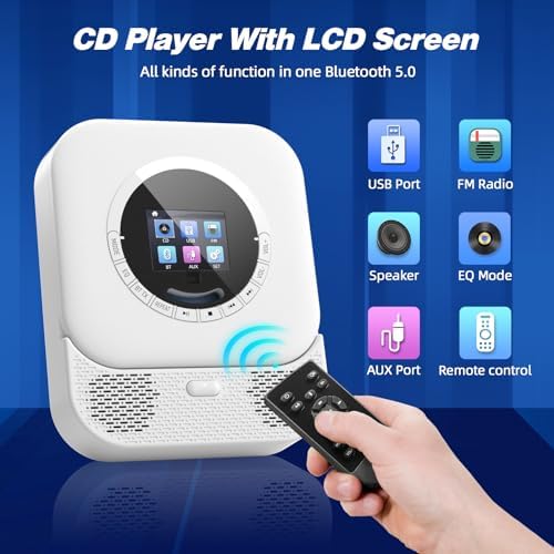 ARAFUNA Desktop cd Player Bluetooth Wall Mounted with Speakers LED Display Remote Control for Home Support FM Radio AUX USB Input