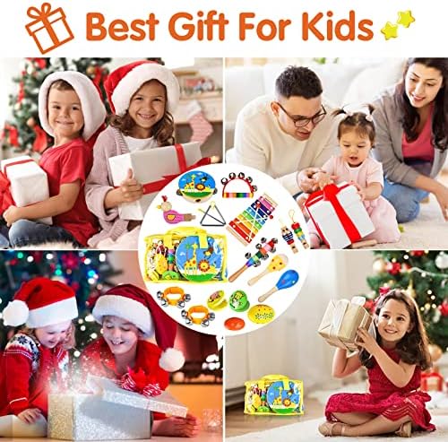 Bala 20PCS Toddler Kids Musical Instruments Set Musical Toys Wooden Percussion Instruments Preschool Educational Toys Xylophone for Kids Early Learning Musical Toys with Storage Bag for Boys Girls