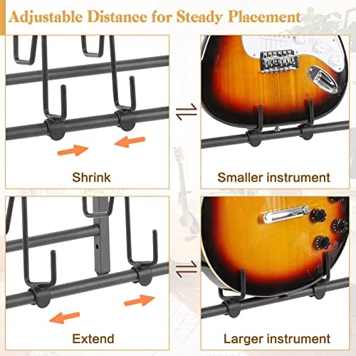 Protect Your Instrument: The holder arms of this guitar stands for multiple guitars are specially covered with thick rubber to increase friction and prevent your instrument from falling. In the meantime, keep your instrument away from scratches. This electric guitar stand features a higher bottom design. Don’t worry about if the instruments would hit the floor anymore. Equipped with a rubber-reinforced non-slip base that keeping the guitar holder stand sturdy on the floor.