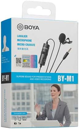 Boya BYM1 by Shotgun Video Microphone by-M1 Ultimate 3.5mm Lapel Mic Clip-On Video Recording Omnidirectional Condenser for iPhone Android Smartphone Mac Tablet DSLR Camcorder, Black