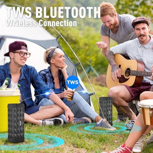 BUGANI Bluetooth Speakers, Portable True Wireless Speakers, TWS Pairing with Loud Stereo Sound,IPX5 Waterproof Built-in Mic, 24H Play Type-C,Suitable for Outdoor Speakers at Travel/Party, 2 Packs