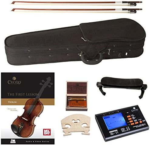 Violin Learning Kit Includes: Cecilio violin dressed in D’Addario Prelude strings, 2 bows, an extra bridge, a quality rosin, adjustable shoulder rest with padding, a chromatic string tuner with metronome, and a lightweight hard case for transport.