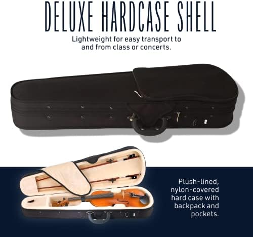 This kit includes a deluxe plush-lined, nylon-covered hard case so you can take your violin anywhere without worry. It’s lightweight for easy transport to and from class or gigs.