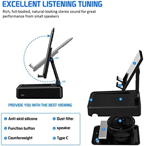 Cell Phone Stand with Wireless Bluetooth Speaker Compatible for iPhone/Samsung/iPad Tablet, Anti-Slip Design Phone Stand with HD Surround Sound Bluetooth Speaker for Home,Office,Outdoor etc.
