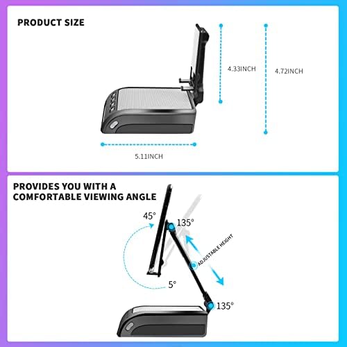 [Fully Foldable To Pocket Size]: Take it anywhere, this bluetooth speaker cell phone stand for desk is collapsible that can be fully folded into a pocket size. Storage little place, easy to carry it in your pocket or bag in travel or business trip. Convenient use, You can free hands to enjoy a Youtube Video or Facetime Calling anywhere at anytime with. the folding mobile speaker phone stand holder.