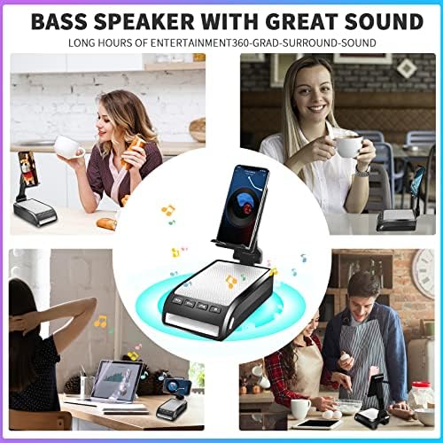 Cell Phone Stand with Wireless Bluetooth Speaker for Desk – HD Surround Sound Perfect for Home , Kitchen and Outdoor , Foldable Phone Holder Speaker Compatible with iPhone/ipad/Samsung Galaxy