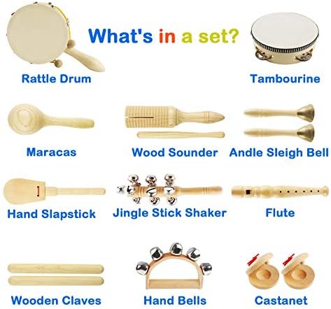 Chriffer Kids Musical Instruments Toys, Percussion Instruments Set with Storage Bag, Preschool Educational Music Toys for Boys Girls, Natural Eco-Friendly Wooden Music Set (11pcs)
