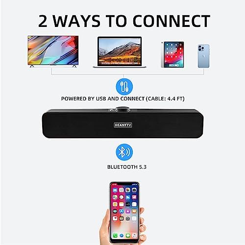 Computer PC Speakers, Bluetooth Sound bar Monitor Speakers, Wired USB-Powered, Great Stereo Sound, Volume Control Knob, USB Desktop Speaker for Monitor, Tablets, Laptop, Tablets, Ps5, Smartphone