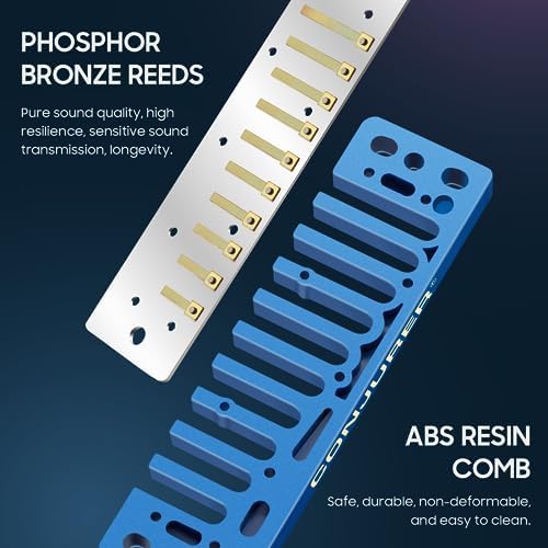 A harmonica’s core component is the reed. The superior phosphor bronze reed used by CONJURER provides durability while producing pure sound quality. The phosphor bronze reed has a high degree of durability, sensitive sound transmission, resistance to corrosion, is difficult to break, and can tolerate extended playing. In order to assure the precision of the tone, this blues harmonica additionally makes use of a brass reed plate, nail technology, and expert tuning tools.