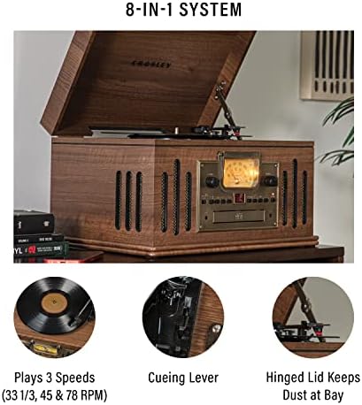 Crosley CR704B-WA Musician 3-Speed Turntable with Radio, CD/Cassette Player, Aux-in and Bluetooth, Walnut