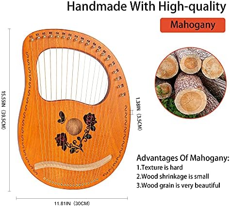 Cuecutie Lyre Harp 19 String Wood Rose Harp Portable Solid Mahogany Harp String Instrument with Black Bag Strings Carry Cloth Sheet Music Pick Tuning Wrench (19 String, ROSE)