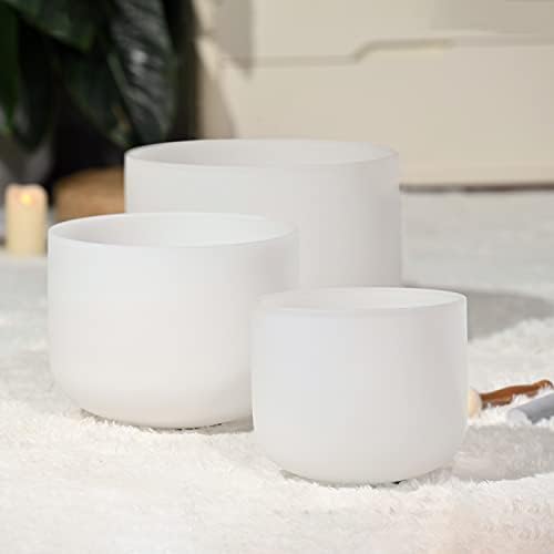 CVNC Set of 3 PCS 6″ A Note 8″ F Note and 10″ C Note Frosted Chakra Quartz Crystal singing bowl With Free Carry Case Bag