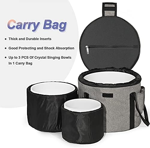 Item Include: 3 PCS high quality crystal singing bowl(6″A 8″F 10″C), one suede mallet, one rubber mallet, one carry case bag,3 PCS rubber O-ring.