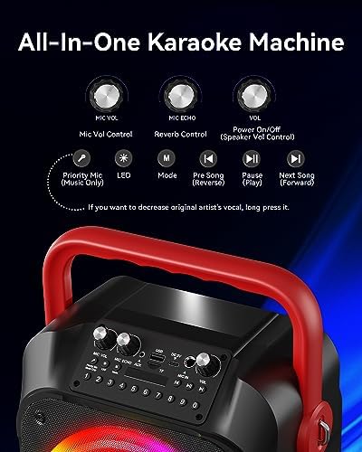 CYY Karaoke Machine for Adults & Kids, Portable Bluetooth Karaoke Speaker with Two Wireless Mics and Colorful LED Lights, Ideal Gifts for Girls Boys Home Party