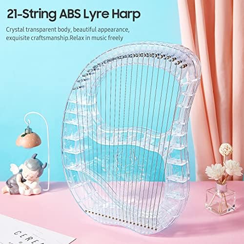 Dayu.p Lyre Harp, 21 Strings Transparent Crystal Lyre, 3D Anti-Fall ABS Body, with EVA Bag, Spare Strings, Tuning Wrench, Lyre Harp for Children Kids Adults Music Lovers