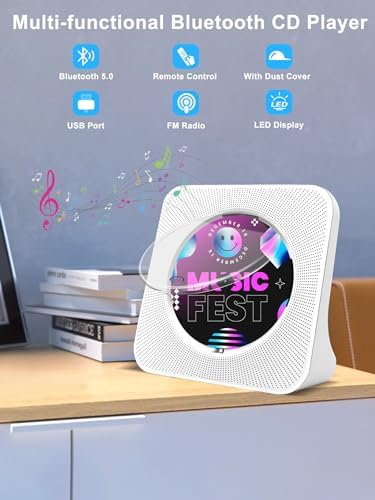 【Multifunctional CD Player】This CD player portable with dust cover not only plays CDs, but also supports Bluetooth mode, USB mode, AUX mode, and other modes. It also has FM audio playback, alarm setting, and timed sleep functions. The CD player is equipped with a remote control for easy mode switching. This CD player supports multiple CD formats, such as CD, CD-R, CD-RW, MP3, WMA, allowing you to listen to your favorite singer’s album CDs at home at any time.