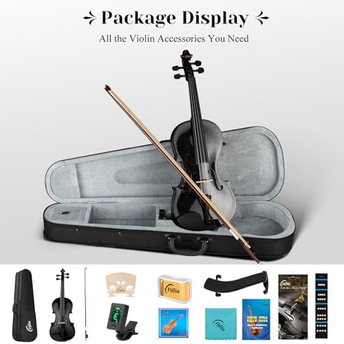 Djlin Black Violin for Beginners Adults, 4/4 Full Size Acoustic Violin for Student, Fiddle Accessories Include Hard Case, Violin Rosin, Violin Bow, Violin Strings, Violin Shoulder Rest
