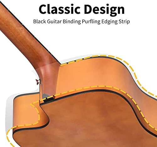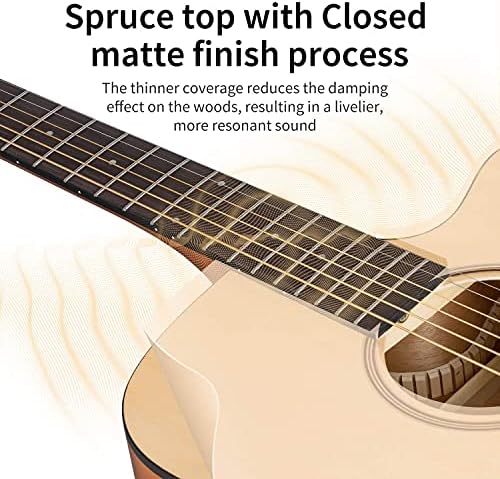 Playability: Donner acoustic beginner guitar with smooth fretboard and C shaped neck profile allows sliding up and down fretboard smoothly without scratching fingers and offers players a comfortable and secure grip. Preset decent action for easy fretting.