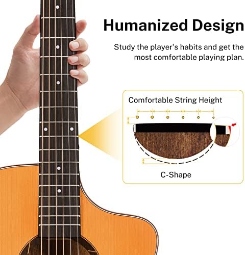 [ Excellent workmanship ] The fingerboard and frets are fully polished by hand, making it comfortable to use, and the left hand will not scratch the hand due to the movement of the handle during the performance. With an x-shaped bracing structure, Donner JF acustica guitarra can maintain the stability of its structure and prevent it from deforming and cracking.