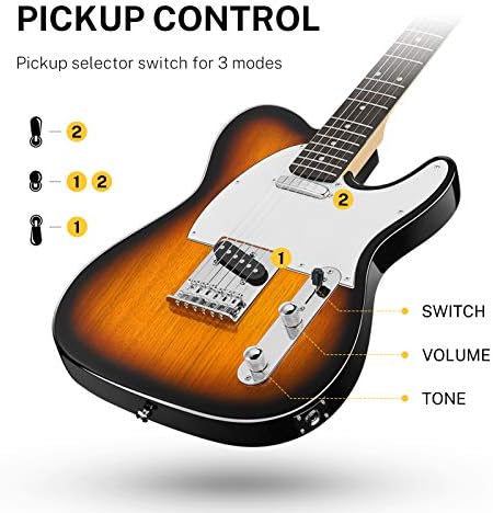 S-S Pickups &3-ways pickup switch – Donner Tele electric guitar has two classic single-coil pickups, restore the classic Tele sound, make it clear, bright, and stronger penetrating power.the 3-ways pickup switch provide different tone performance.