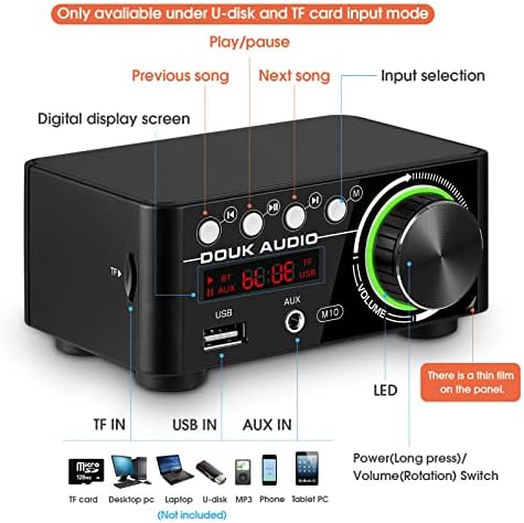 Douk Audio 120W Mini Bluetooth 5.0 Power Amplifier 2.0 Channel Hi-Fi Stereo Class D Audio Amp Wireless Receiver TF USB Home Speaker (Upgrade Version)