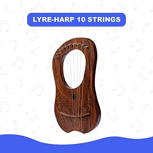 Dragon Style 10 Strings Lyre Harp Brown Celtic with Extra strings and Tuner for Beginners