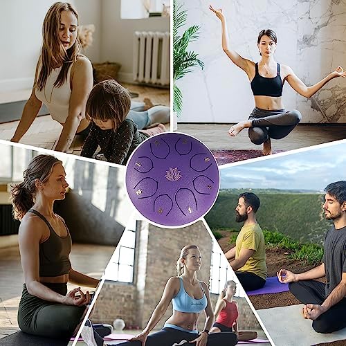 Eavnbaek Steel Tongue Drum 6 Inch 8 Note Steel Hand Drum with Bag, Music Book, Drumsticks, Mallet Holder and Finger Paddles, for Camping, Meditation or Yoga (Purple)