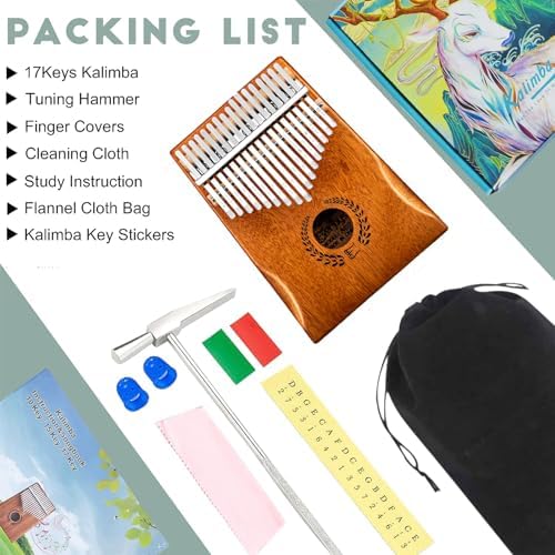 Everjoys Kalimba Thumb Piano 17 Keys, Professional Musical Instrument Finger Piano Marimbas with Portable Soft Cloth Bag, Fast to Learn Songbook, Tuning Hammer, All in One Kit (Natural Color)