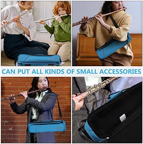 EXCEART Flute Case Carrying Bag Waterproof Lightweight Canvas C Case Cover Backpack with Shoulder Strap for Home Musical Instrument Room Sky- blue