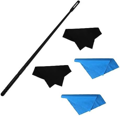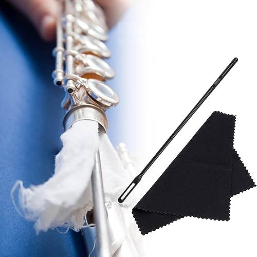 Flute Cleaner Care Cleaning Kit, Flute Cleaning Saxophone Rod Cleaning Swabs with 4 Microfiber Cleaning Cloth Swabs, Flute Cleaner Kit Flute Polishing Cloths, Black+Blue