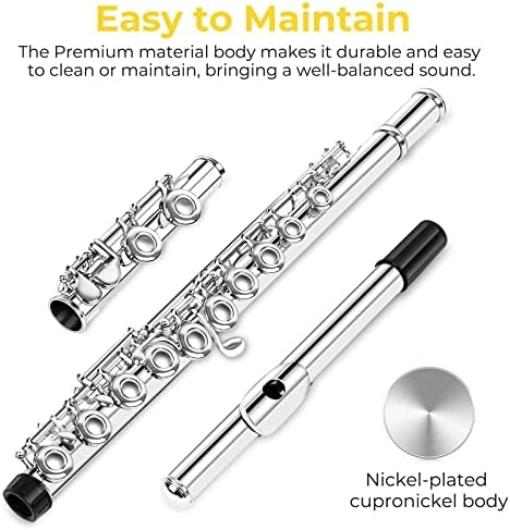 ✅ [Built for School Band] It is very lightweight, and portable and comes with all the necessities to get started with learning or playing, which is perfect for beginners. The flute kit is made for beginners and students, including a cleaning rod, carrying case, foldable stand, gloves and tuning rod, screwdriver, key brush, cleaning cloth, and swab. Just assemble and play the flute directly when you get it. Ideal for the school band, rehearsal, or performance