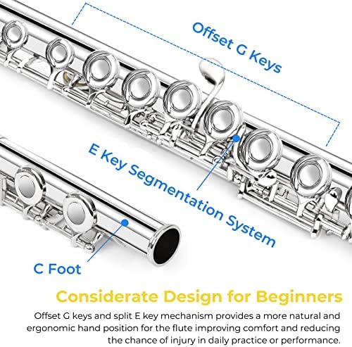 ✅ [Offset G and Split Emechanism] The offset G mechanism provides a more natural and ergonomic hand position to the beginner flute improving comfort and reducing the chance of injury. The split E mechanism improves response when playing a high E. Great for beginners to get started with the flute