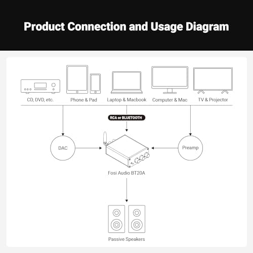 2 Channel Amplifier: The BT20A Mini Bluetooth amplifier home audio offers both Bluetooth and RCA inputs, along with passive speaker outputs. This versatile amplifier enables you to build a high-quality 2.0-channel audio system, allowing seamless connections to your phone, computer, tablet, and more.